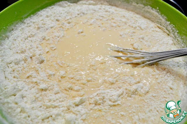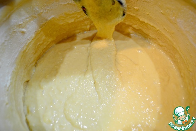 муку - не всю сразу будем добавлять, а в три этапа (тесто не должно быть крутым).