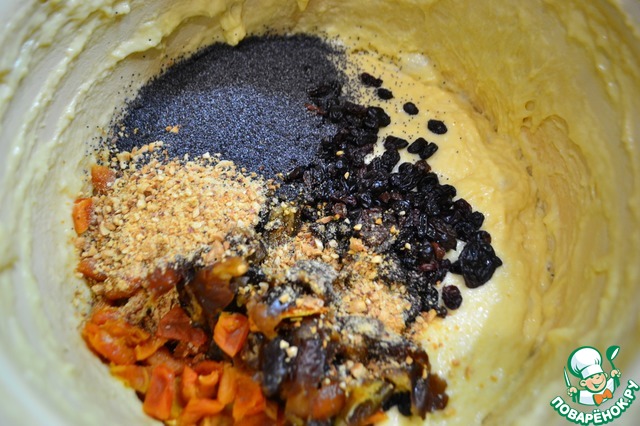 Добавляем сухофрукты, орехи, мак, всё на ваш вкус...