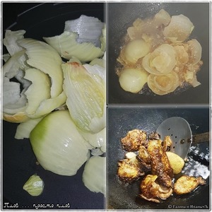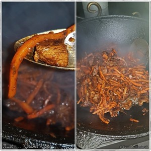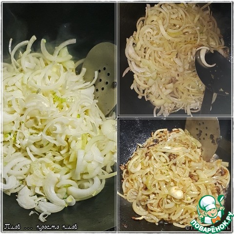 Я чего стал делать, подсмотрел у кого-то в видероликах, чтобы «деловой» лук не переводить. Верхние слои с головок обдираю, они и суховаты, и на вкус (я пробовал) не сильно приятны. Вот их в казан и отправляю. Дочерна жарить не надо (раньше тоже прям обугливал), как достиг лук вот такого состояния близкого к сильно зажаренному, то из казана их удалить.