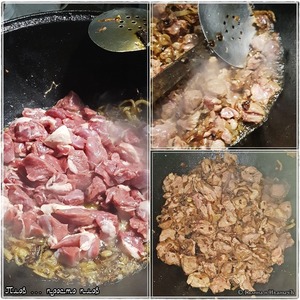 Мнения есть разные. В смысле, что надо отправлять в казан первым. Лук или мясо? Говорят даже, что этим отличается рецепт ферганского от рецепта самаркандского. И много, что еще говорят.