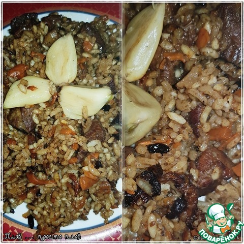 Замечу, что если первым обжаривать мясо, плов получается темнее. Вроде как поджаристее.