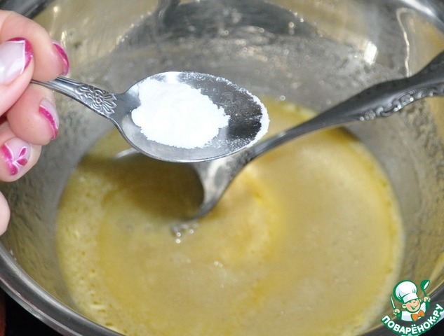 Добавляем соду, перемешиваем, нагреваем ещё 1 минуту.