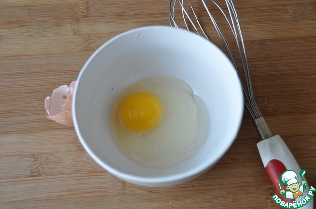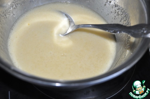 Переливаем яйцо в горячую смесь, хорошо перемешиваем венчиком.