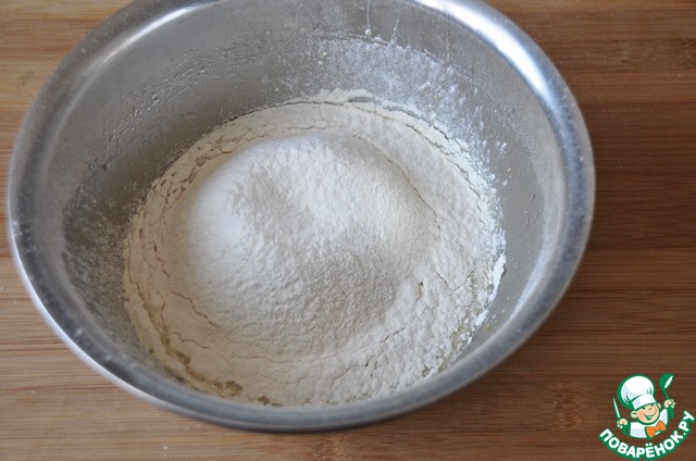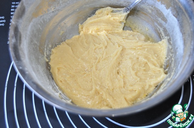 Замешиваем тесто, оно не должно быть густым. Накрываем тесто плёнкой, ставим на 30 минут в холодильник.