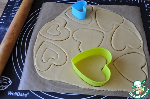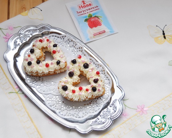 Я решила делать пирожные в форме сердец. Можете брать любые формы для печенья. Сейчас модно делать пирожные и тортики в форме "букв" и "цифр", вырезая соответствующие заготовки.