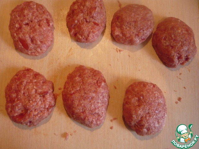 Формируем наши биточки. Обваливаем в муке и отправляем на смазанную форму.