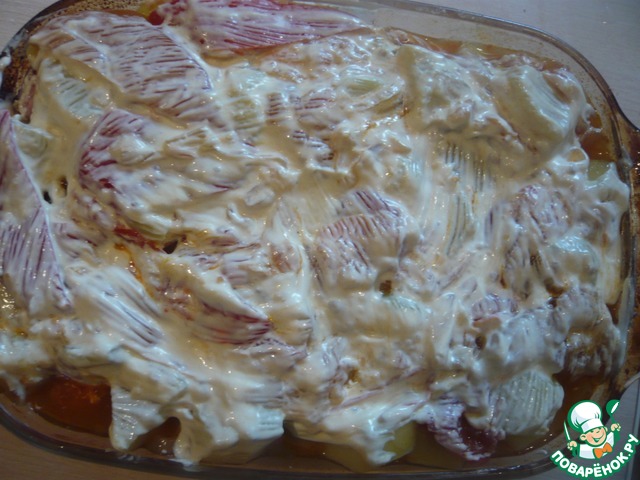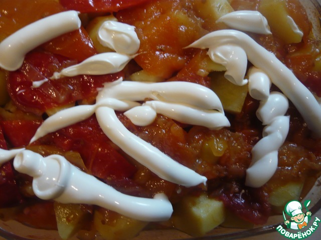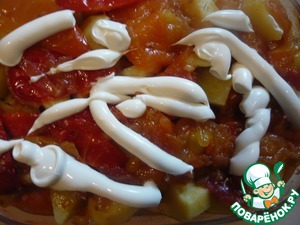 Сверху добавляем майонез. Но можно йогурт или сметану.