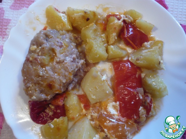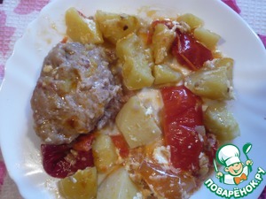 Я хлеб только замачивала с помидорками, вынимала и в фарш, а помидоры уже вместе с лечо и баклажанами выкладывала.