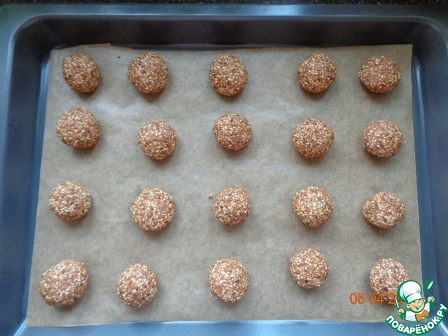 Сформировать шарики. У меня получилось 20 штук. Разместить на листе, застеленном бумагой для выпечки.