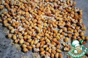Первым делом готовим в карамели орешки - кедровые. Их нужно промыть в сите и откинуть на бумагу для выпечки.