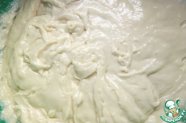 На фото тесто после добавления 350 г муки. Перемешиваем ложкой. -