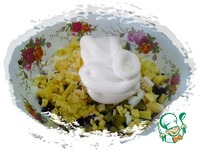 Все продукты смешать в салатнике, добавить соль, перец и майонез. |