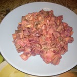 Всем любителям свеклы хочу предложить ещё один несложный, но очень вкусный салат. От других свекольных салатов его отличает нарезка всех продуктов кубиком.