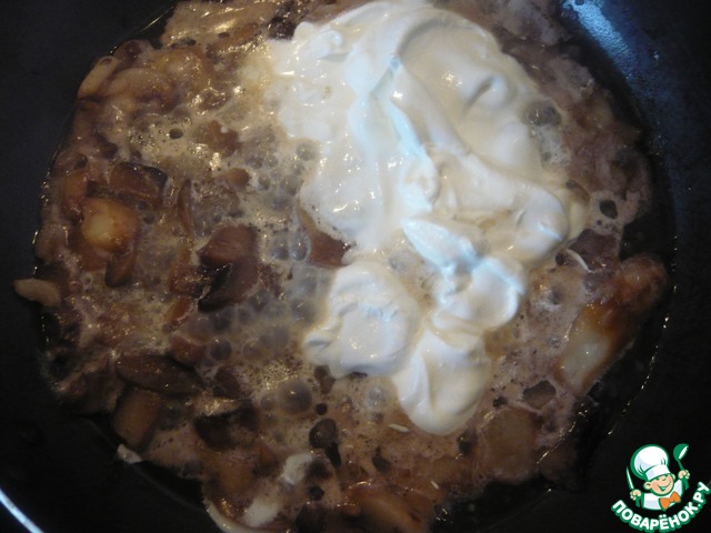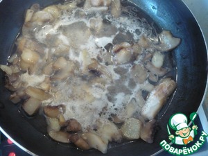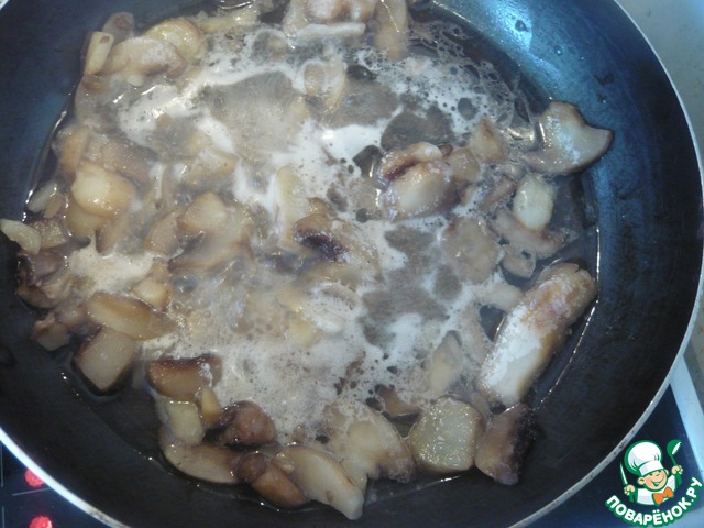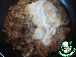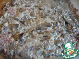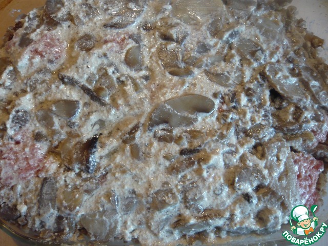 • Сверху выкладываем грибы. Отправляем в духовку на 20 мин. при 190 градусах.