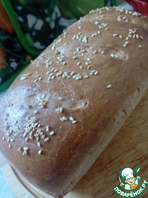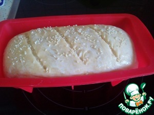 После расстойки все выглядит вот так... Тесто поднялось до краев формы. Делаем надрезы острым ножом, чтобы у хлеба не разорвало крышу:)!!! Смазываем сливками и посыпаем, по желанию, кунжутом.