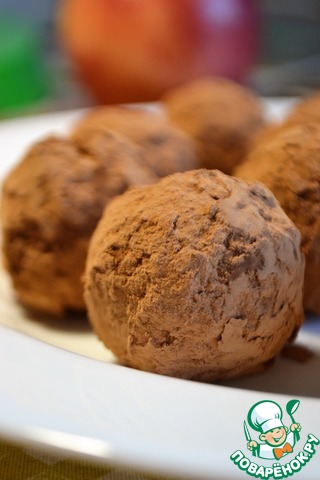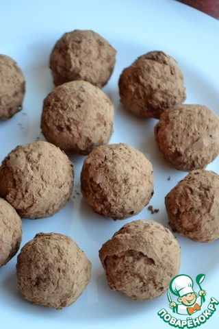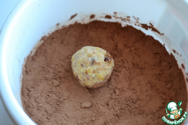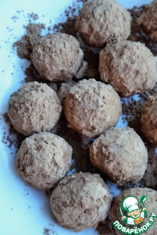 Из полученной массы скатать шарики размером с грецкий орех. Обвалять их в какао.