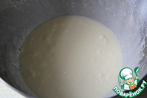 • Масло растопить и охладить. Смешать со взбитыми яйцами с сахарной пудрой.
