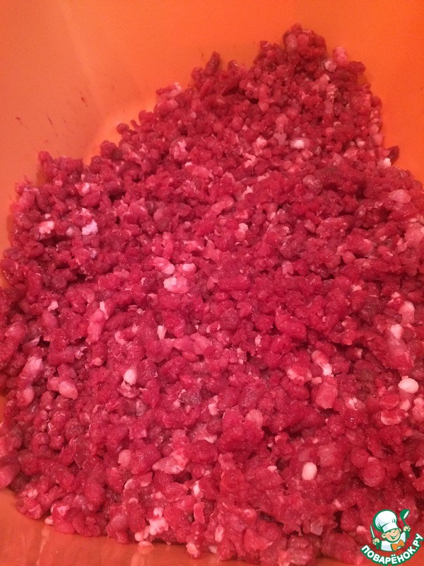 Из свинины, говядины и лука сделать фарш. Посолить, поперчить по вкусу. Для сочности можно добавить 50 мл ледяной воды.