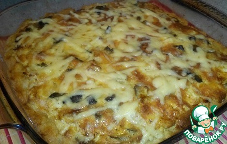 Заливаем яичной массой начинку и ставим в разогретую до 180°С духовку на 30 минут, запекаем до золотистой корочки.