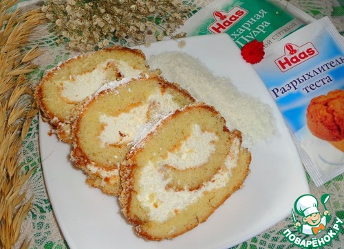 Рецепт «Рулет с творожно-кокосовым кремом»: