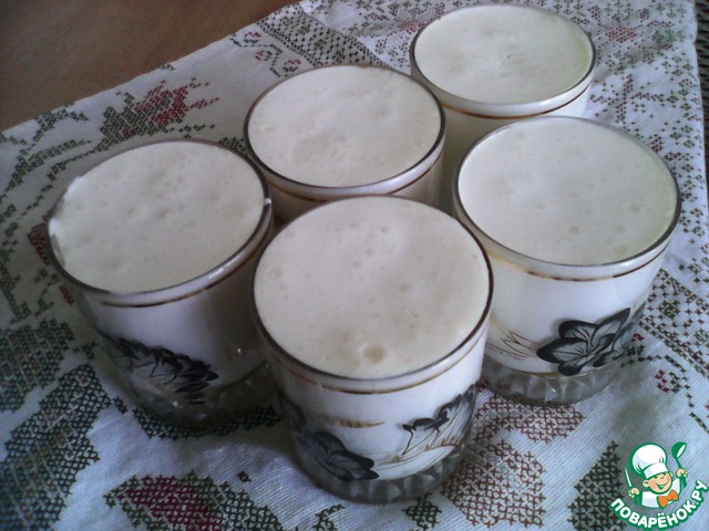 В другую чашу налить ряженку, добавить сахарную пудру, кардамон и взбить. Сахар Вы можете корректировать по своему вкусу.