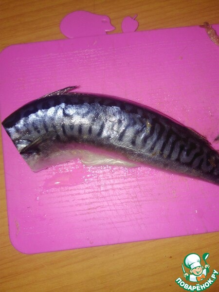 Главное в этом рецепте - все операции следует выполнять с мороженной скумбрией, до окончания приготовления рыба не должна разморозиться. Ингредиенты я указала на 3 скумбрии, но в этот раз я готовила одну. Рыбку моем, чистим, режем на куски среднего размера (каждую рыбу на 6-7 частей)