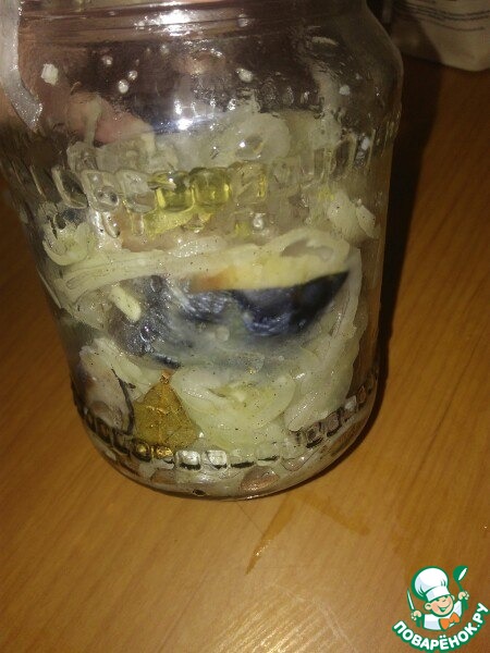Даем рыбе настояться минут 5 (но не больше), затем складываем всё в банку, чем плотнее, тем лучше, закрываем пластиковой крышкой и убираем в холодильник на сутки. Приятного аппетита!