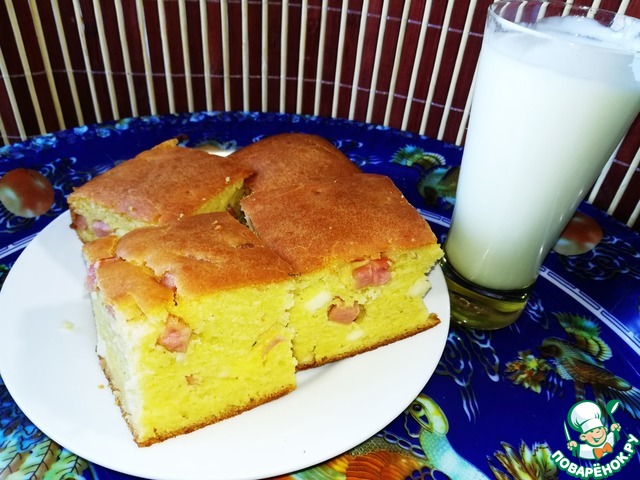 С такой начинкой не может быть не вкусно Но для меня всё же "слишком" кукурузный. Готовила ранее по другому рецепту, там соотношение муки кукурузной и пшеничной 1:1.