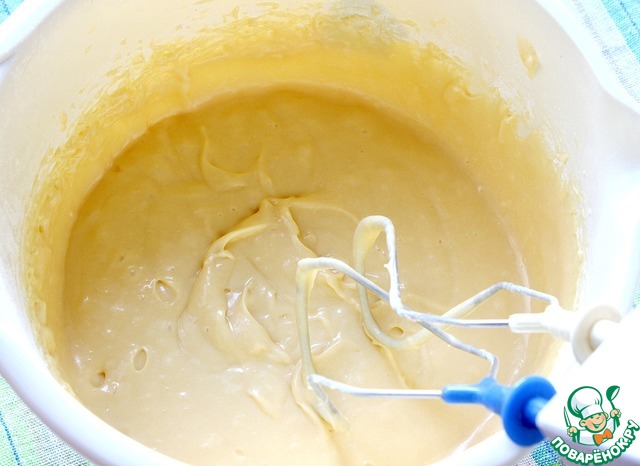 Соединяем жидкие и сухие компоненты и еще раз взбиваем.
