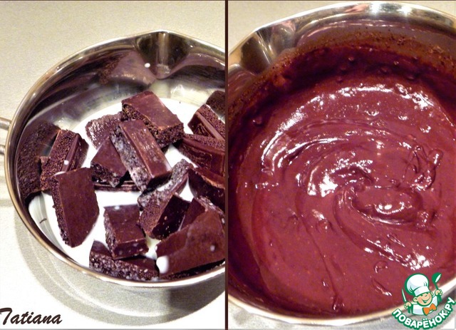 В небольшой кастюльке вскипятите молоко,"поломайте" в него 100 г. шоколада, перемешайте в однородную массу.