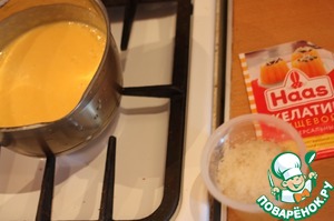 Желатин замочить в соотношении 1:6, т. е в 96 гр холодной воды. Я использовала сироп из-под персиков.