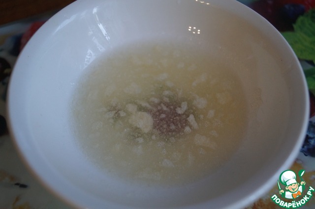 Быстрорастворимый желатин залить 40 мл холодной воды и оставить для набухания.