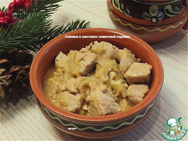 Рецепт «Свинина в сметанно-сливочной подливе»: