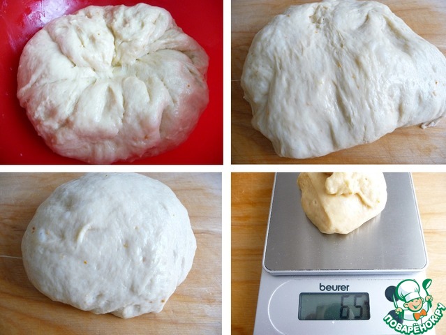 Выложить тесто из миски, слегка обмять, подкрутить в шар.