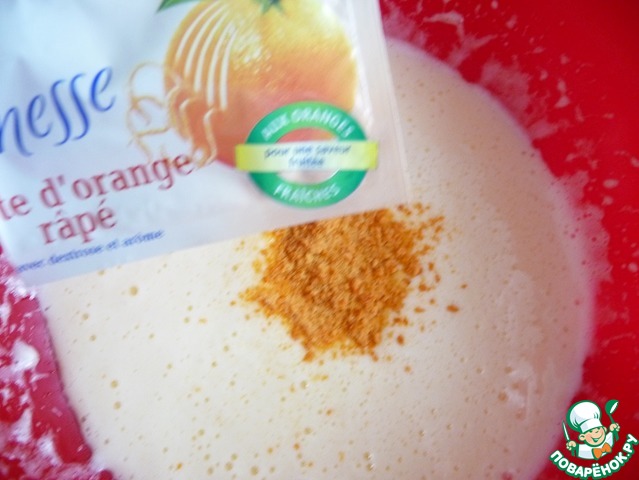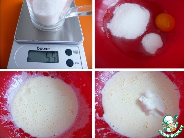 • Яйцо взбить с сахаром и ванильным сахаром в крепкую пену.