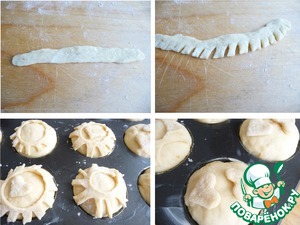 • Для украшения небольшой кусочек теста раскатать в ленту, приподнять над доской, чтобы не прилипла и сделать надрезы.