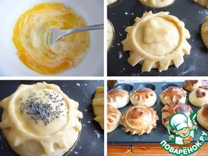 За 5 минут до помещения теста в духовку смазать заготовки яйцом.
