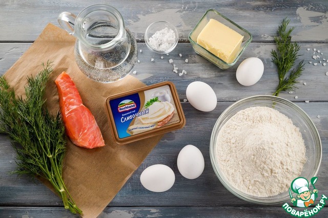 Ингредиенты для «Профитроли со сливочным сыром и лососем»: