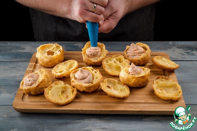 Рецепт «Профитроли со сливочным сыром и лососем»: