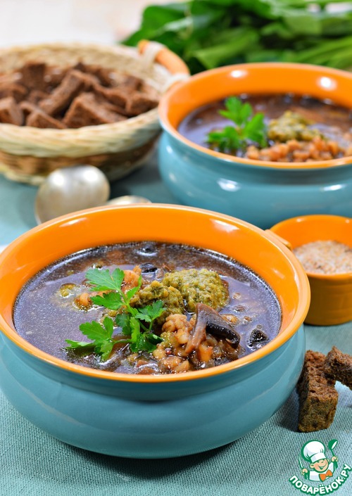 Ингредиенты для «Суп грибной с зелеными клецками»: