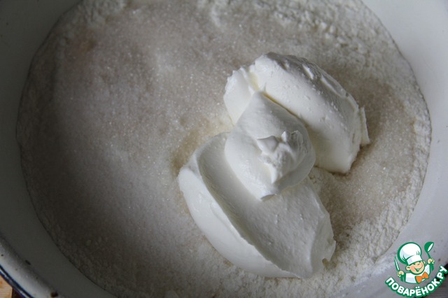 Добавить сахар, ванильный сахар, соль и сметану.