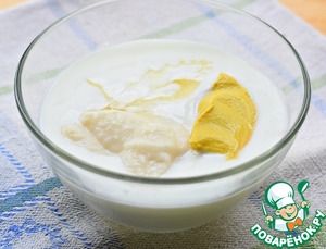 Для соуса смешать йогурт, хрен, мед (лучше жидкий) и горчицу. Остроту соуса регулировать по своему вкусу! Как основу для соуса, вместо йогурта, можно использовать густой кефир или простоквашу. Тоже будет хорошо.