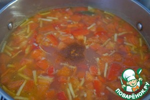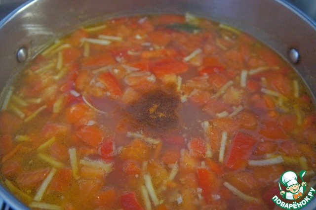 Добавить измельченный чеснок, сладкую паприку и дать супу настояться под крышкой 10-15 минут.