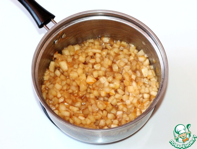 10. Кладем в кастрюлю порезанные яблоки и карамелизируем их 2-3 минуты. На этом этапе можно добавить по вкусу "Сахар с корицей" "HAAS", корректируем вкус.