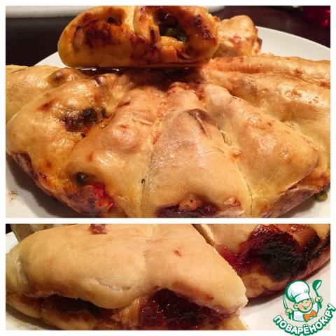 16. Получилась заготовка с двумя рожками. С остальным тестом поступаем так же. Если у вас остались обрезки теста, раскатываете их, скручиваете в жгут и украшаете серединку пирога.