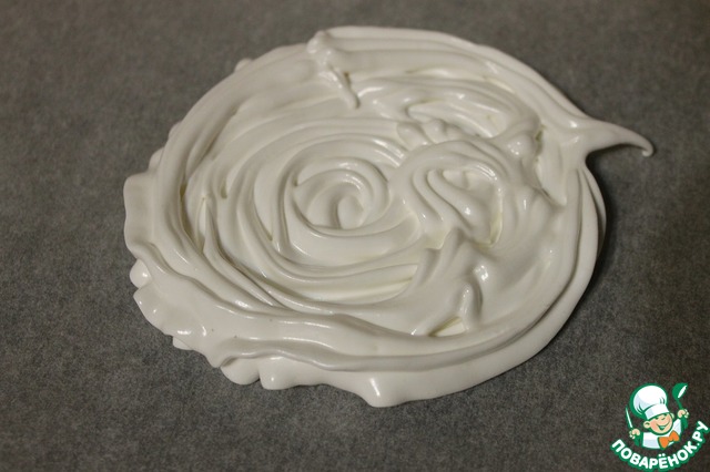 Должна получиться воздушная масса, которая не вытекает и не выпадает из чаши, в конце добавить крахмал и взбивать еще 2 минуты.