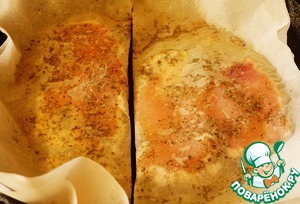 Пергамент посыпаем сначала специями.
