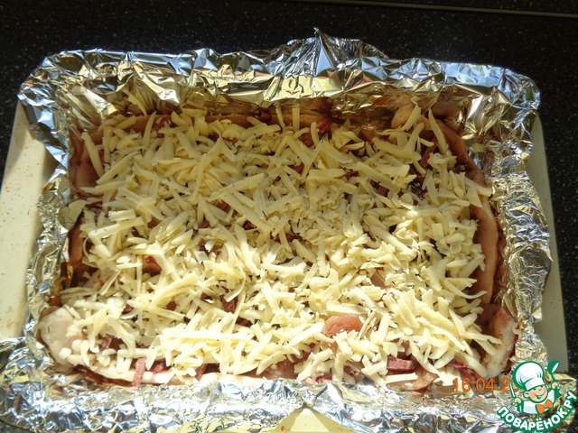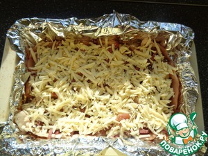 Сверху положить шинкованный сыр.