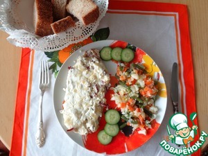 Отбивные в сметанном соусе с колбасой