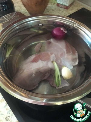 Поставить варится бульон на 1,5 часа на маленьком огне. В воду добавить лук, чеснок, лавровый лист, палочки от кинзы или петрушки, можно так же корень сельдерея. Не забывать снимать пену.